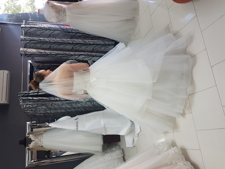 Sukienka została dopasowana do wzrostu 165cm + 10cm obcas. Kolor sukni wg producenta to Ivory, jednak w zależności od światła jakie na nią pada, na większości naszych zdjęć wygląda na śnieżnobiałą.