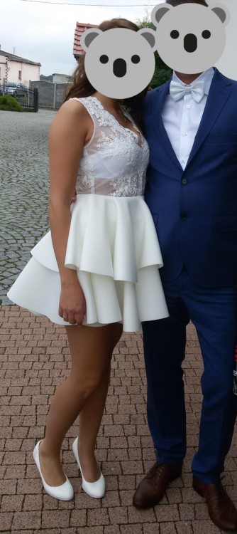 - koronkową sukienką na poprawiny w kolorze białym/ecru. (kosztowała 300 zł)