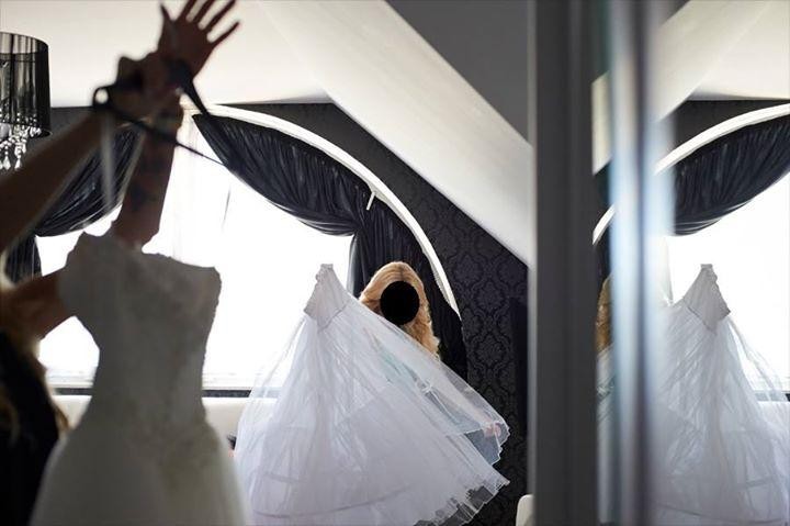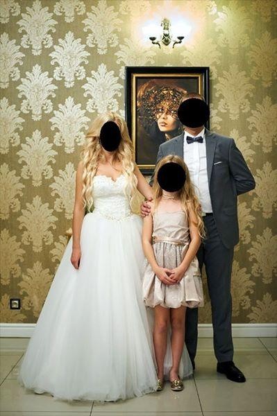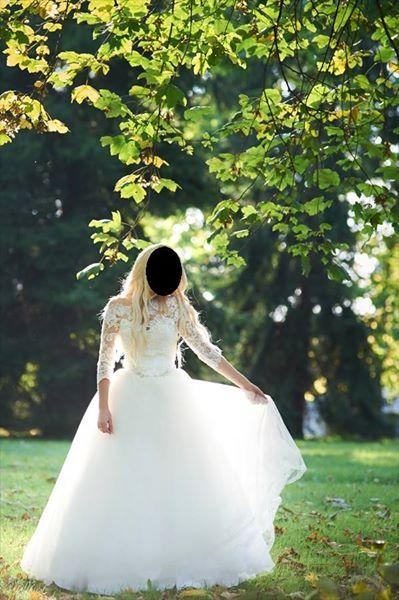 Sprzedam suknię ślubną w kolorze jasne ecru, szyta na wzrost 168cm + 10 cm obcas. Suknia została uszyta w salonie Diana w Rzeszowie, jestem pierwszą właścicielką. Rozmiar to jakieś 34/36, wymiary na jakie uszyto suknie - biust 86cm, pas 64 cm, biodra 85 cm, długość sukni 154 cm. Suknia jest jednoczęściowa, sprzedaję ją razem z koronkowym bolerkiem, zrobionym z takiego samego materiału jak suknia oraz z halką. Gorset sukni jest wykonany z koronkowego materiału z ręcznie przyszywanymi koralikami, zasuwany na zamek, dół wykonany jest z tiulu. Suknia została oddana do pralni po sesji zdjęciowej. Możliwość przymiarki w Dębicy ( województwo podkarpackie).