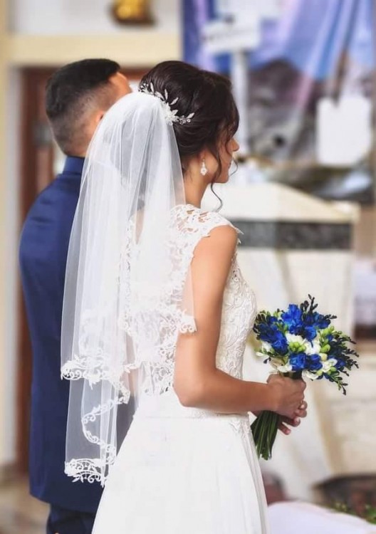 Dołączam welon który ma wykończenia spójne z suknią czyli koronki.