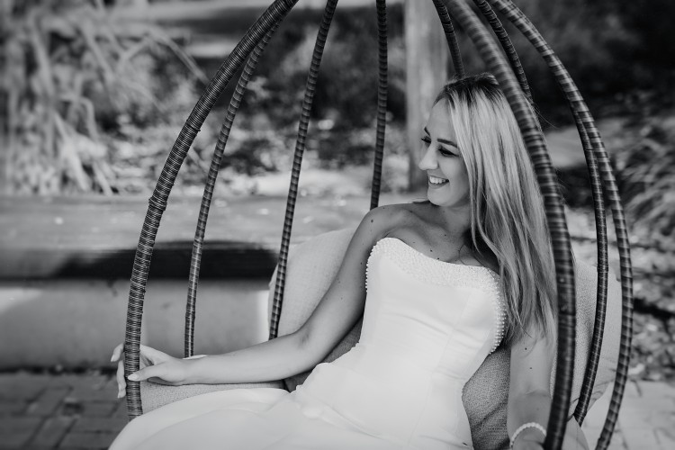 Suknia jest bardzo elegancka i kobieca, podkreśla kształty. Od połowy ud rozszerza się co umożliwia swobodne poruszanie. Przepięknie się układa. Suknia zdobiona perłami i delikatnymi koralikami.