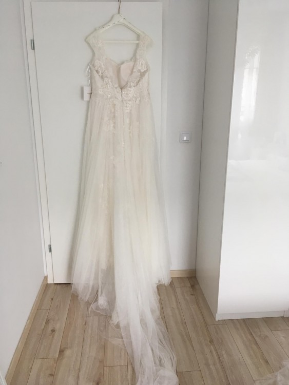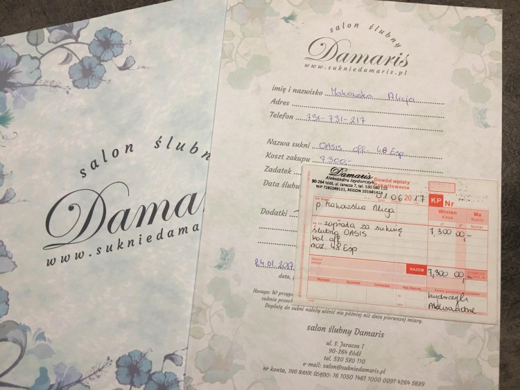 Suknie zakupilam w salonie sukien slubnych Damaris w Lodzi- jedynym lodzkim salonie wspolpracujacym bezposrednio z marka Pronovias, byla specjalnia dla mnie sprowadzona z Barcelony, posiadam rachunek, umowe, metki, oraz wszystko, co otrzymalam w dniu odbioru. Za suknie zaplacilam 7300 zl, bez welonu. Suknia w stanie idealnym, nie posiada zadnych uszkodzen, jest przepiekna na zywo, niezwykle zwiewna i romantyczna, wykonana z koronek, ktorych jakosc czuje sie pod palcami w dotyku i jedwabnego, niezwykle miekkiego jedwabnego tiulu, posiada przepiekny dlugi tren. Seksownie, ale nie wulgarnie odkryte plecy.