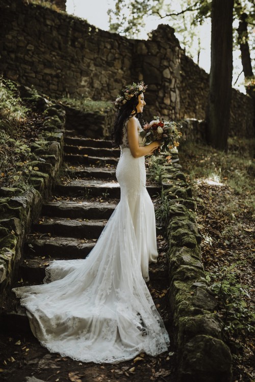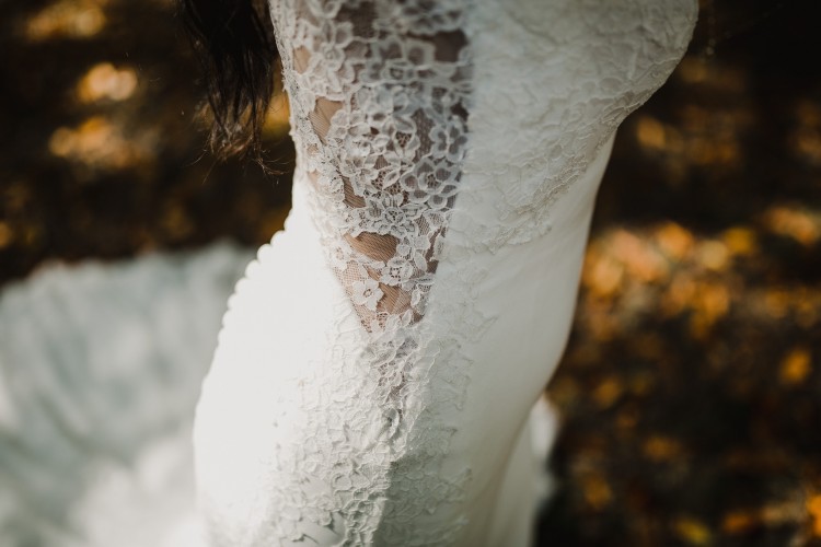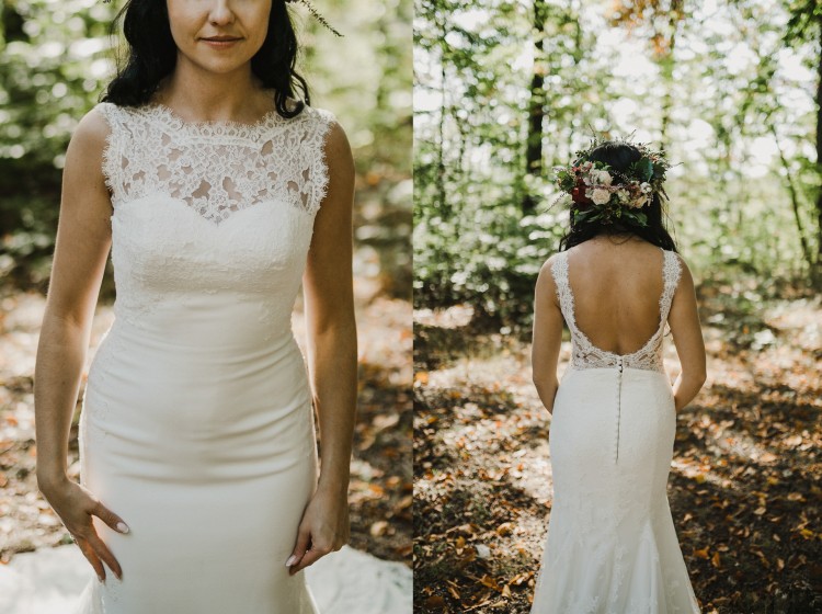 Model sukni typu syrenka wspaniale modeluje i uwydatnia kobiece kształty. Dekolt w kształcie serca pięknie podkreśla biust, jest jednak przykryty delikatną koronką co wizualnie nadaje subtelności. Gołe plecy pięknie wysmuklają oraz nadają lekkości całej kreacji. Natomiast długi tren sprawia, że suknia jest spektakularna.Tył sukni oraz długi tren pokryte są delikatną koronką, która bardzo przyozdabia całą sukienkę. Po bokach sukienki koronka pokrywa gołe ciało co niesamowicie wyszczupla. (widać to na jednym ze zdjęć)