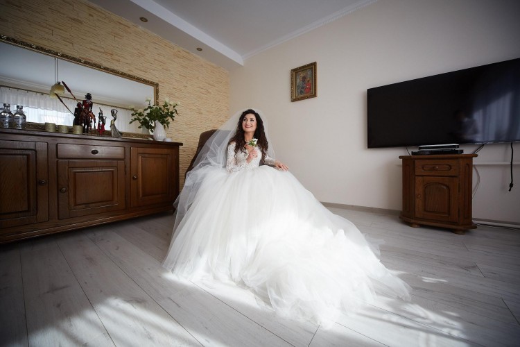Suknia jest dopasowana do mojej figury na rozmiar 36/38, mimo obfitego dołu suknia jest bardzo wygodna, świetnie się w niej bawiłam, a co najlepsze...przy obrotach wygląda magicznie( mogę podesłać filmik zainteresowanej osobie), jak widać świetnie się prezentuje, ma podpinany tiul, który można wykorzystać w kościele, a na sali już mieć podpięty na guziki, które pięknie się prezentują.
