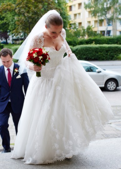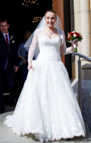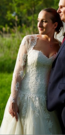 Do sukni dołączam oryginalne bolerko - było w komplecie razem z suknią, więc koronki do siebie pasują.