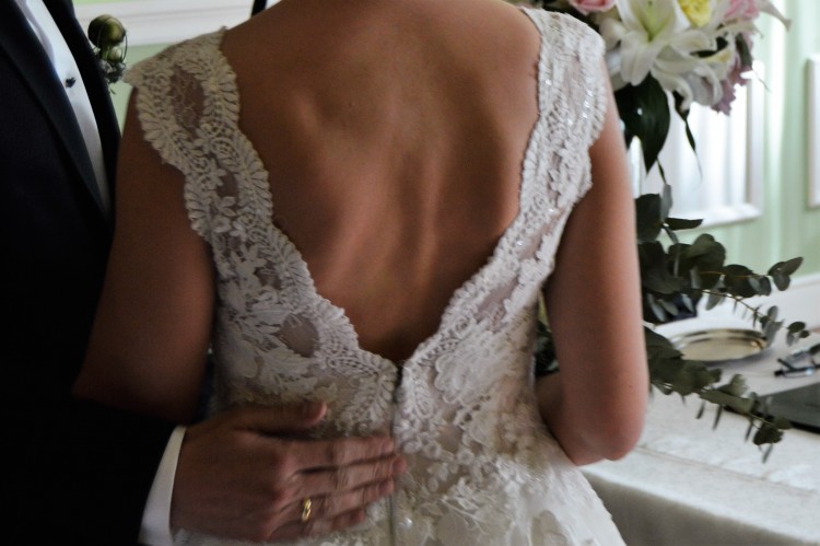 Suknia z podpinanym trenem, w kolorze śmietankowym w rozmiarze 36, szyta na wzrost 165 +6,5 cm obcas