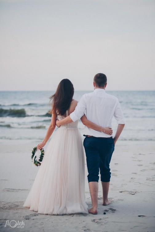 Suknia ślubna pudrowy róż z kamieniami Swarovskiego
