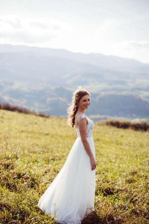 Suknia pięknie układa się podczas tańca, zdjęć w plenerze czy nawet podczas chodzenia, jest również bardzo wygodna.