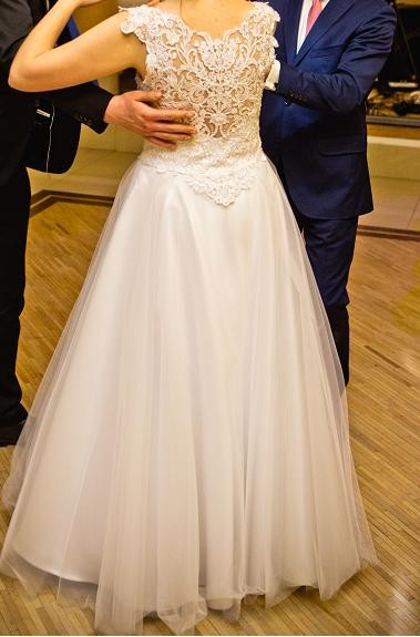 Suknia fantastycznie układa się w tańcu i przepięknie wychodzi na fotografiach.