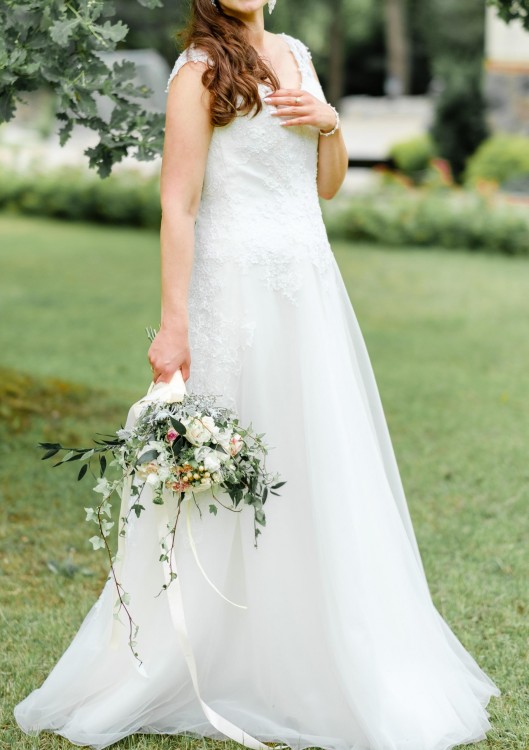 Suknię należy oddać do czyszczenia (jest nieco przydeptana na dole, przybrudzona lekko w okolicach dekoltu).
