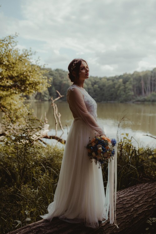 Sprzedam suknię ślubną marki Rara Avis, model Odri, zakupioną w warszawskim salonie Madonna. Suknia szyta na wzrost 152 cm plus 9 cm obcas, rozmiar 34/36. Suknia z długimi rękawami, zapinanymi na perełkowe guziczki. Wyszywana koralikami i perełkami na dekolcie i plecach. Składa się z dwóch części (dopasowanej sukni oraz zwiewnej, tiulowej). Do sukni dodaję ozdobę do włosów marki Cudne Wianki, widoczną na zdjęciach. Suknię można obejrzeć oraz przymierzyć w Poznaniu. Zapraszam do kontaktu.