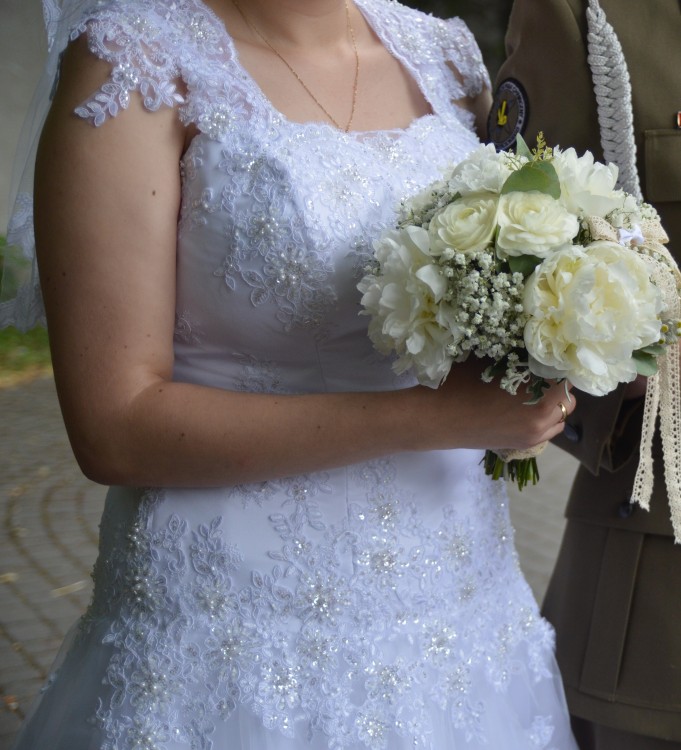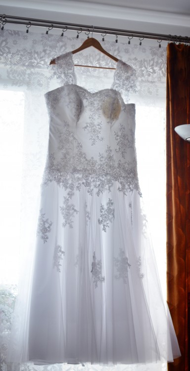 Sprzedam piękną, wygodną suknię ślubną, ubraną dwa razy, wyczyszczoną chemicznie. Suknia szyta na miarę (na co dzień noszę rozmiar 42/44) w salonie na wzrost 177 cm + 2 cm obcas. Zakupiona w czerwcu 2017 roku.