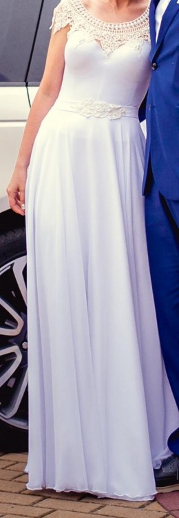 Witam, mam do sprzedania przepiękną, oryginalną suknię ślubną marki Riki Dalal. Suknia była szyta na zamówienie i sprowadzana z Izraela. Posiadam metki potwierdzające oryginalność. Suknia założona raz - na własny Ślub. Suknia składa się z dwóch części: spódnicy oraz gorsetu ozdobionego kamieniami szlachetnymi i zapinanego na ukryte haftki. Zakupiona w sierpniu 2016 roku, kolor biały. Wymiary: - obwód biustu: 85/72 - obwód pasa: 68 - Obwód bioder: 99 Długość: 140 cm Jest to rozmiar 36/38, gdyż posiada regulację umożliwiającą poluzowanie sukni, więc osoba nosząca na co dzień rozmiar 38 nie będzie miała problemu, aby ją założyć. Suknia idealna na letnie miesiące - długa, dwuwarstwowa - nie trzeba zakładać rajstop. Suknia lekka, niesamowicie wygodna, nie zsuwa się. Zdaję sobie sprawę, że to bardzo ważny zakup, dlatego istnieje możliwość przymiarki w Warszawie oraz odbioru osobistego. W razie konieczności jakichkolwiek przeróbek, udostępnię kontakt do salonu, który sprowadzał suknię i na pewno zgodzi się zająć nią jeszcze raz. Do sukni dodaję długi welon, widoczny na zdjęciach. Suknia to model 1509 z katalogu Riki Dalal. Na rynku światowym jego cena to ok. 20 tys.