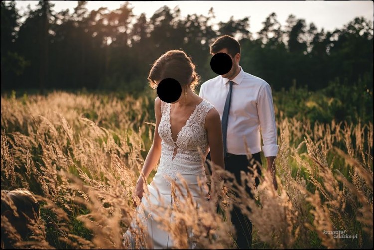 Kobieca, dopasowana suknia ślubna z pięknym dekoltem na plecach.