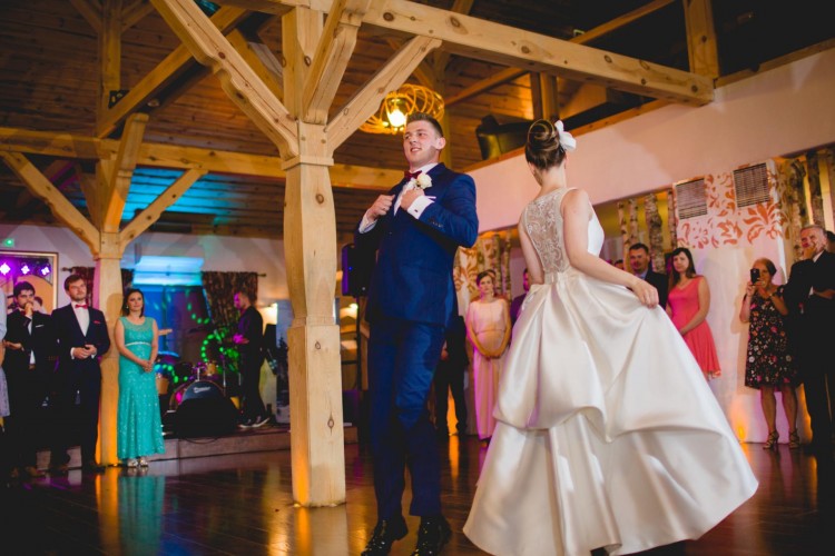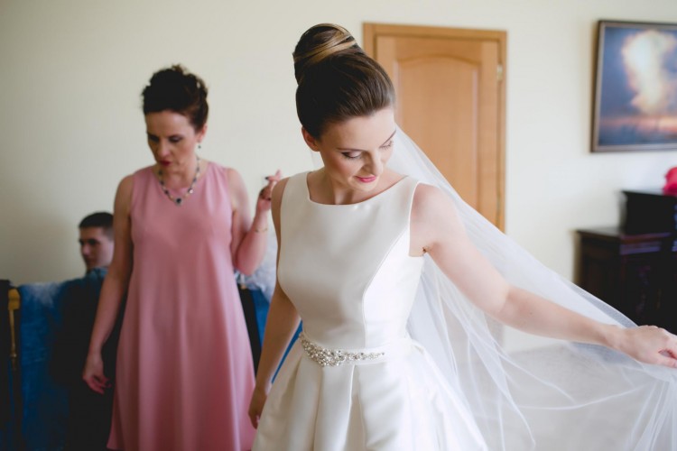 Suknia jest bardzo elegancka i układa się bardzo miękko. Na fotografiach widać jak wygląda z podpiętym trenem.