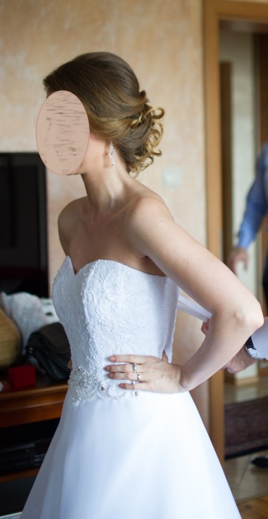 często i tak się zsuwa. Suknia była założona tylko na ślub z weselem