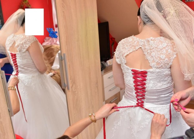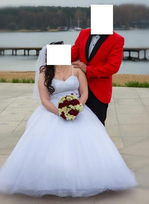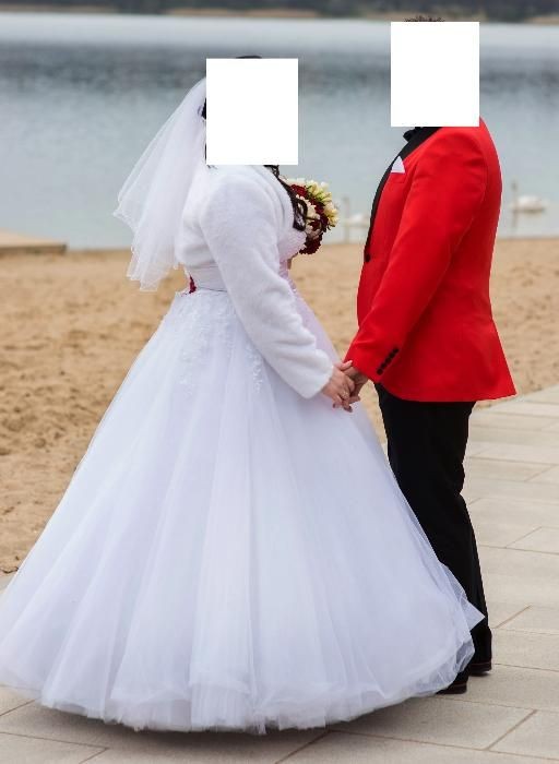 zainteresowane osoby bardzo prosze o Kontakt sms ponieważ nie zawsze moge odebrać.. do sukni dolanczam Koło, bolerko 2 pary ramiaczek ,dwie wstążki do wiązania Biała i czerwona... do sukni są przyczepione listki czerwone jednak można je zawsze odczepic... suknia jest skromna a zarazem ma coś w sobie.zdiecie nie oddaje jej uroku tyle co na żywo
