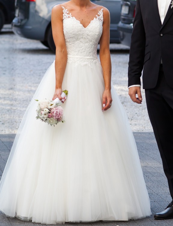 Suknia została wyczyszczona w pralni, nie ma też żadnych uszkodzeń.