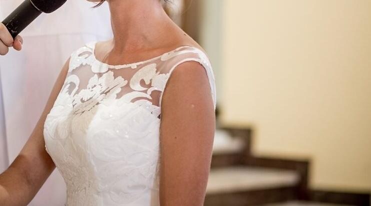 Suknia ślubna w rozmiarze 34, szyta na długość 164 cm plus 9 cm obcas.
