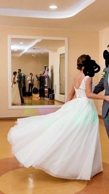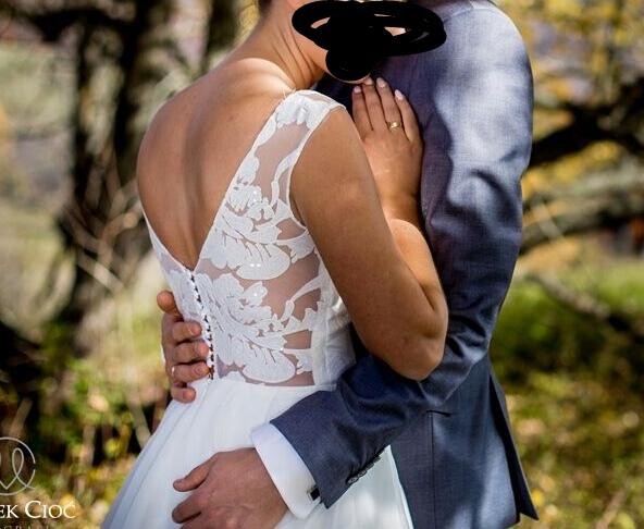 Zakupiona w 2017 roku za 3000 zł. Posiada podpinany tren oraz pasek który można odpiąć. Jest lekka, wygodna, z kołem które można wyciągnąć i zrobić z niej suknię bardziej "lejącą". Proszę o kontakt mailowy pod adresem kamilaa1993@gmail.com