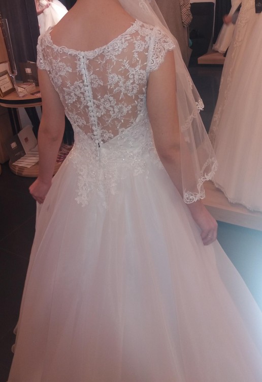 Sprzedam piękną suknie ślubną firmy Fasson Dorota Wróbel, Suknia założona tylko na ślub i sesje zdjęciową, a następnie oddana do czyszczenia i renowacji w salonie, w którym została uszyta. Suknia w rozmiarze 34 (wzrost 165 cm + 10 cm obcas). Długość od pasa do ziemi ok. 104 cm. Góra sukienki wykonana z koronki, tył sukni jest zapinany na guziczki. W sukni jest wszyte, koło, co nie krępuje ruchów.