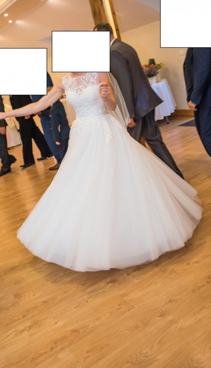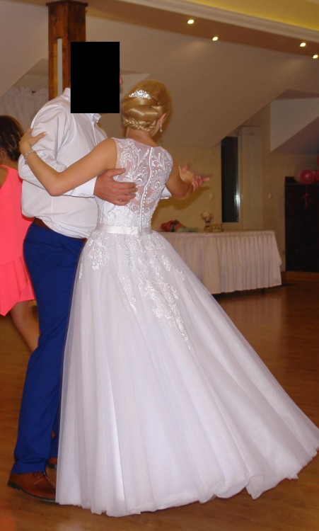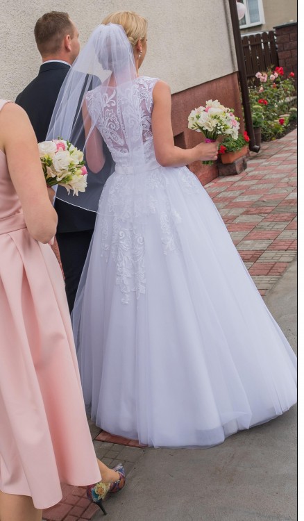 Suknia zakupiona w salonie sukien slubnych w Toruniu. Suknia ma wszyste miseczki, dół -tiul jedwabny (nie gniecie się)