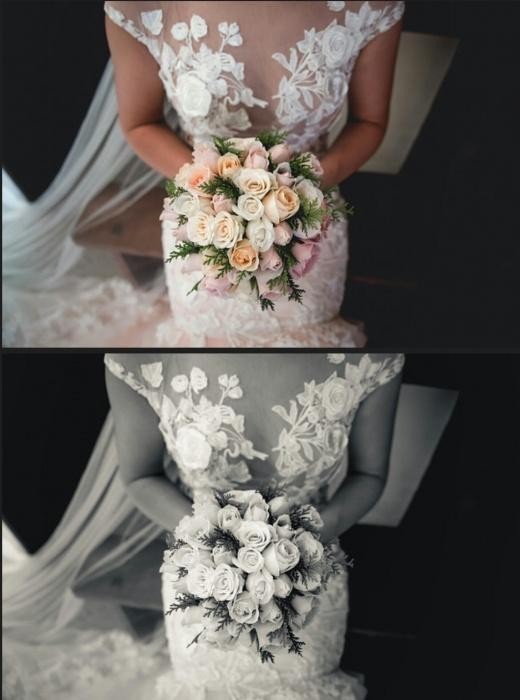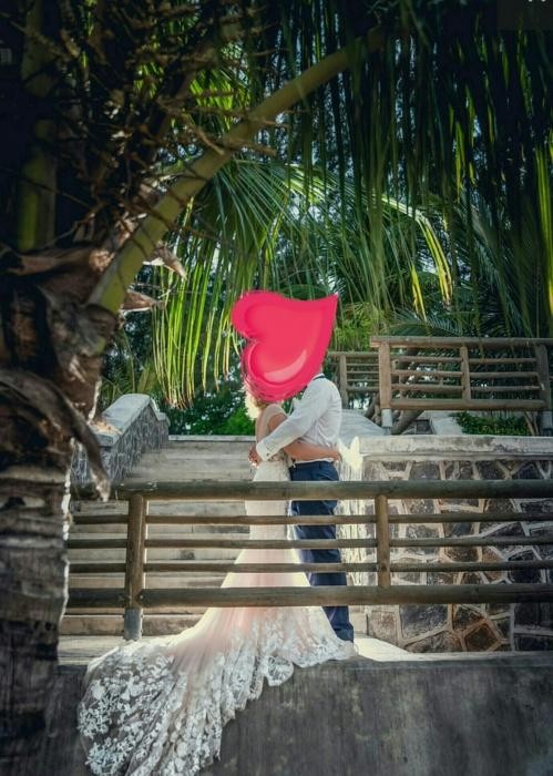 Suknia szyta z koronki 3d na moje zamowienie. Tren nie jest odpinany. Poleciała w walizce na inny kontynent- materiał się nie mnie, po wyciągnięciu nadawała się od razu do założenia. Ma wszyte elasttczne koło, które powoduje, ze dół sukni pięknie się układa. Suknia jest koloru biało- brzoskwiniowego z lekkim różem. Bez dziur, wyprana chemicznie, wyprasowana. Do kompletu welon o długości 3 metrów. Uszyta na wzrost 176 cm (obcas 6 cm). Obwód bioder 94-96 cm, pas 67-69 cm biust typowe 75 b. Suknia fenomenalnie wygląda na zdjęciach. Ubrana do ceremonii w kościele i na sesję zdjęciową. Wygląda jak nowa.
