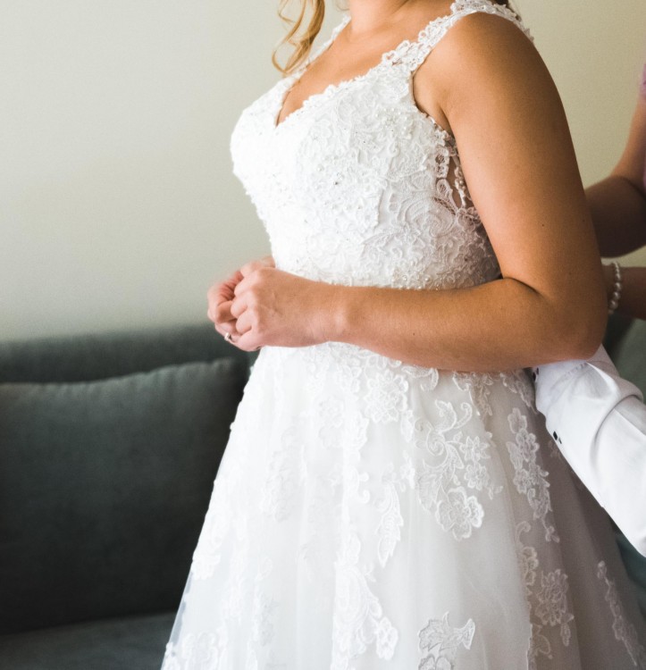 Suknia idealnie podkreśla talię, ma wszyte miseczki D, jest bardzo delikatna, i lekka więc idealnie nada się w tańcu, podczas weselnej nocy na pewno będzie wygodna.