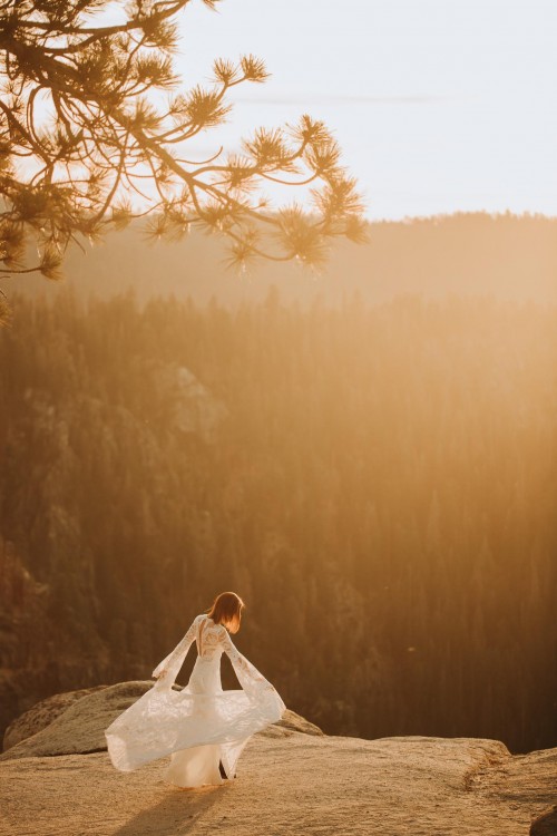 Suknia składa się z dwóch elementów pięknego kimona z koronką oraz jedwabnej halki. Kimono może być również noszone bez halki, by pięknie wyesponować koronkę np. do sesji zdjęciowej.