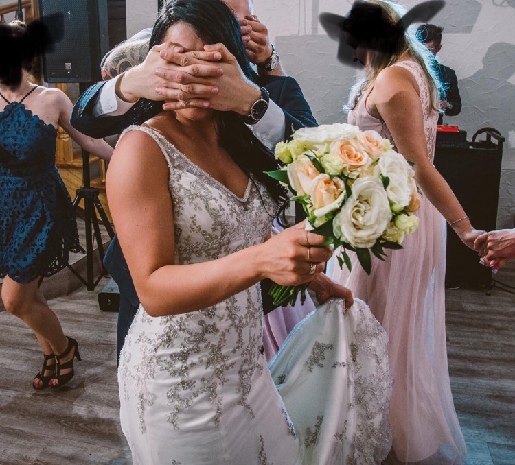 Suknia posiada nieliczne uszkodzenia na trenie, wynikające z deptania po nim w trakcie tańca. Uszkodzenia zostały ocenione przez zaufaną krawcową jako w 100% możliwe do naprawy. Chętnie podejmę się zlecenia naprawy, ale najpierw chciałabym znaleźć Panią chętną do zakupu.