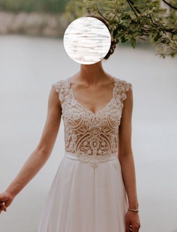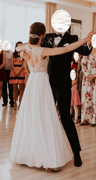 Elegancka suknia ślubna w kształcie litery A własnego projektu.
