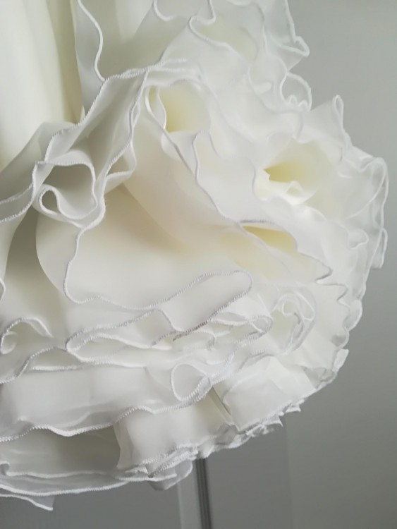 Suknia bardzo lekka, delikatna i zwiewna. Uszyta na wzrost 167 cm + 9 cm obcas. Rozmiar 36/38.