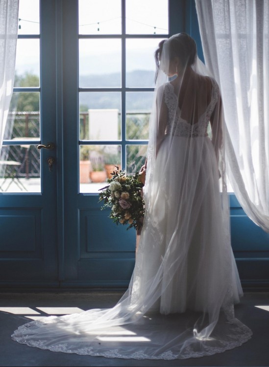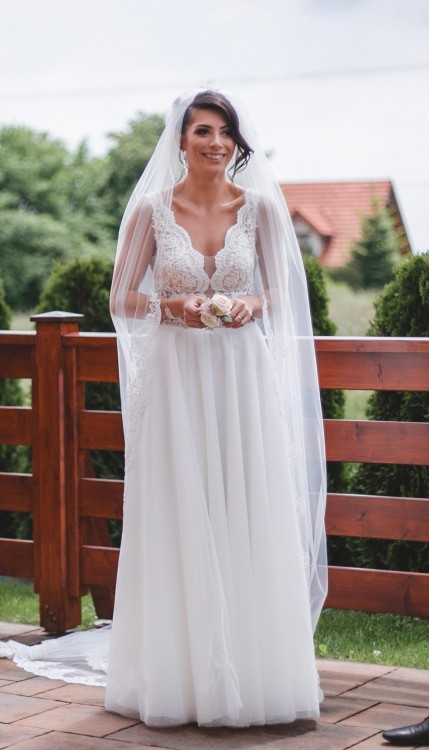 Dołączam również welon widoczny na zdjęciu wykończenia wykonane z koronki, która jest w również w Sukni.