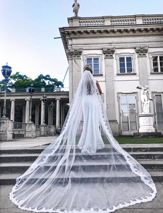 Suknia ślubna Samantha z trenem projektu Agnieszki Światły + welon 3,5 m