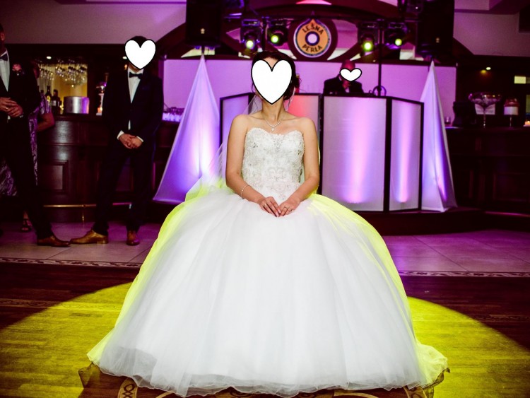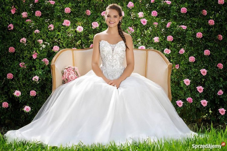 Sprzedam przepiękną suknię ślubną Kolekcji Justin Alexander Sweetheart 6110 rozmiar 34/36, kolor white/silver, zakupioną w salonie sukien ślubnych ANNA. Suknia na przepiękny zdobiony gorset, tiulową spódnicę i podpinany tren. Wymaga czyszczenia i posiada niewielkie uszkodzenia jednej warstwy tiulu spowodowane świetną zabawą weselną. Gratis dodaję bolerko uszyte na specjalne zamówienie oraz pokrowiec. W razie pytań zapraszam do kontaktu. Cena podlega negocjacji.