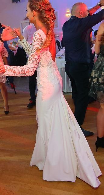 Mam do sprzedania suknię ślubną z kolekcji Violi Piekut model Sharon. Cena w salonie 4200zł, suknia jest prosta ale bardzo bogata przez górę, która jest cała z koronki, ma wycięte plecy i długi tren, który jest podpinany do środka. Suknia jest bardzo wygodna. Suknia jest w stanie idelanym. Wymiary sukni: