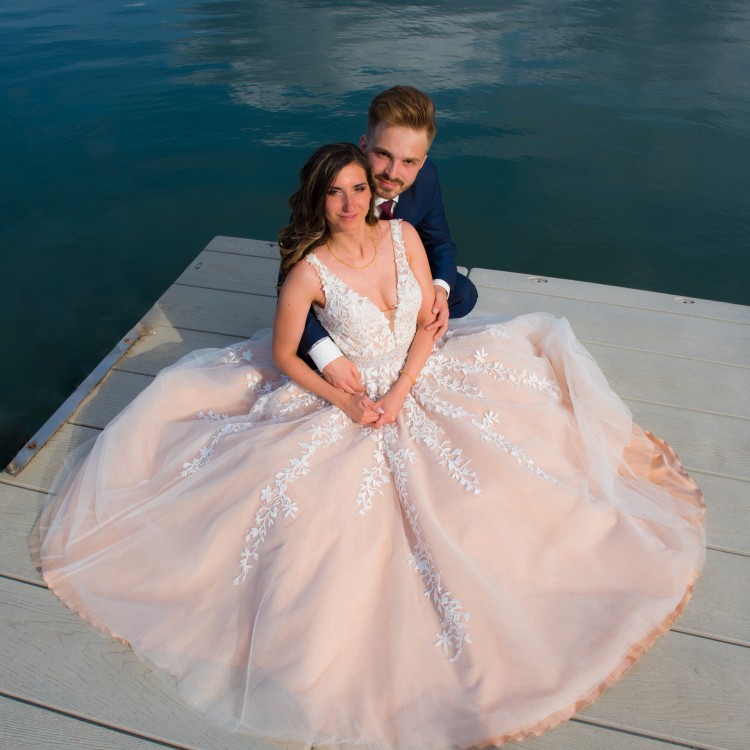 Witam, mam do sprzedania przepiękną suknię Sherri Hill 11335, szytą na wymiar w salonie. Suknia posiada beżową podszewkę, przez co w zależności od światła wydaje się być raz bielsza, raz beżowa, a czasem i różowawa, co czyni ją niezwykle oryginalną. Cała przeszyta jest białą koronką oraz ozdobiona jest delikatnymi, mieniącymi się kryształkami. Bardzo lekka, pięknie układa się w tańcu. Nie wymaga stanika, ma wszyte wkładki przez co uwydatnia nawet niewielki biust (możliwość wycięcia wkładek bez uszczerbku na fasonie). Świetnie podkreśla talię poprzez przeszyty kryształkami pas, z tyłu ma spore wycięcie, podpinany tren. Szyta na wymiar - 63/634 w talii i 82 w biuście. Noszę rozmiar 36. Zapraszam także do obejrzenia zdjęć sukni w Internecie. Suknia wyczyszczona, bez żadnych uszkodzeń. Zapraszam na przymiarkę w Bydgoszczy, ewentualnie w Krakowie po wcześniejszym umówieniu. Serdecznie polecam!