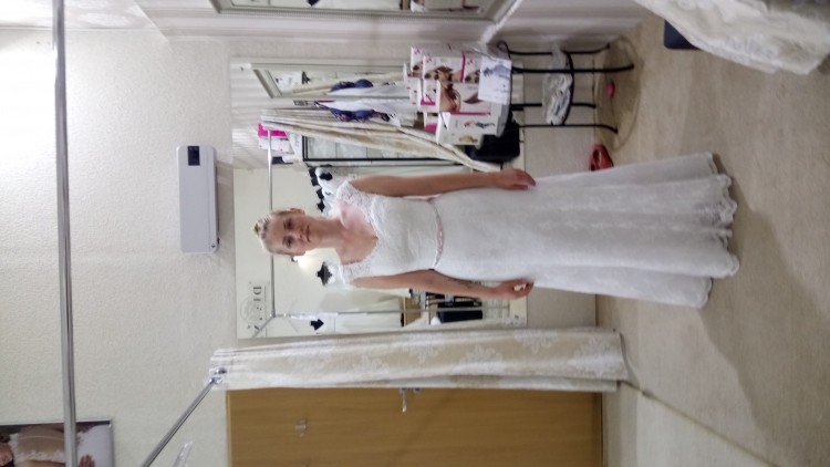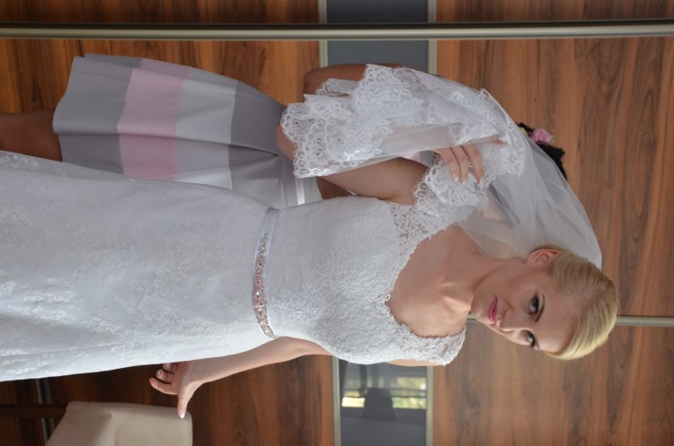 mam do sprzedania piękną klasyczna suknie ślubną Sincerity 3835. Została zakupiona w salonie Divina w Bielsku. Suknia została nieco przerobiona, pierwotnie miała kształt rybki, została usunięta halka,którą w każdej chwili można dodać . Oryginalny pasek został zmieniony na pasek zrobiony na zamówienie z oryginalnych cyrkonii Swarovskiego oraz sutaszu wykonany przez Pillow Design. W każdej chwili można zmienić pasek na oryginalny. Suknia została dopasowana na wzrost 172 cm oraz rozmiar 36/38. Suknia została wykonana z koronki weneckiej. Suknia posiada lekki koronkowy tren, który jest podpinany, tworzyw niesamowity efekt. Jest lekka, pięknie układa się w tańcu. Jest bardzo wygodna.