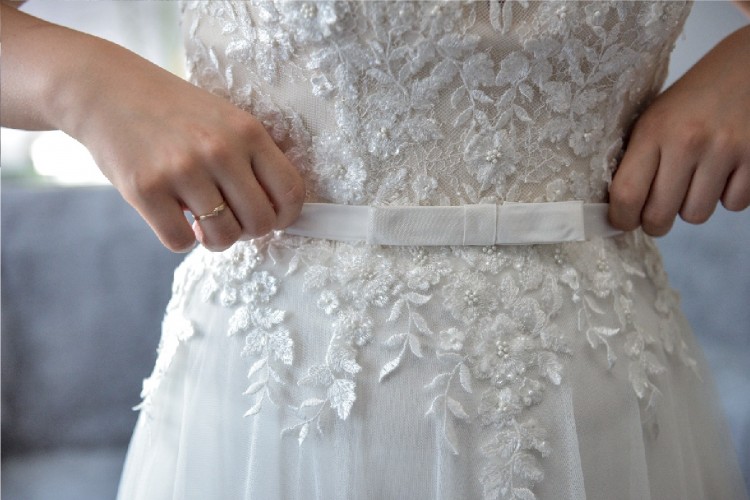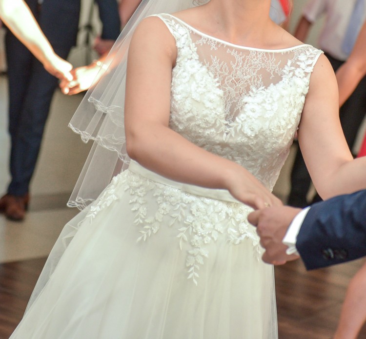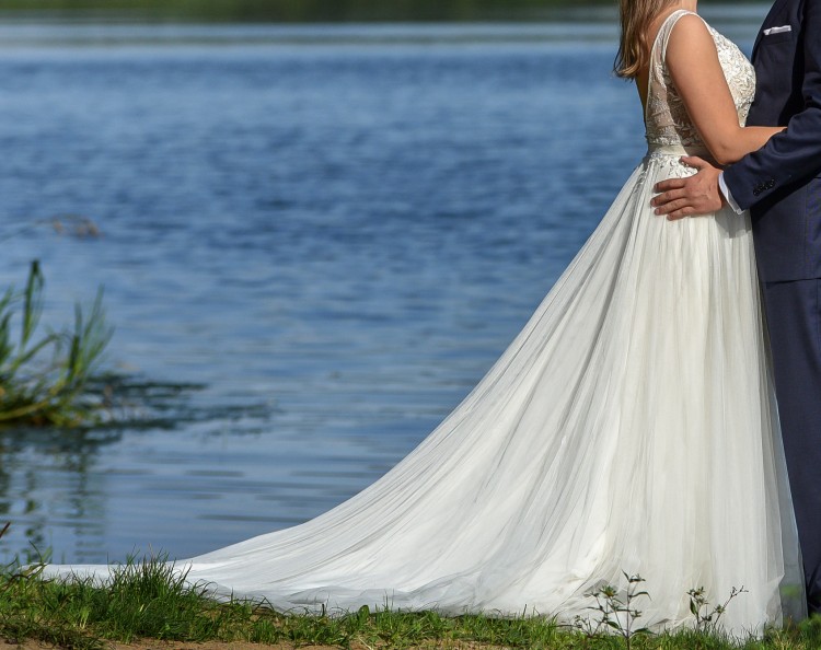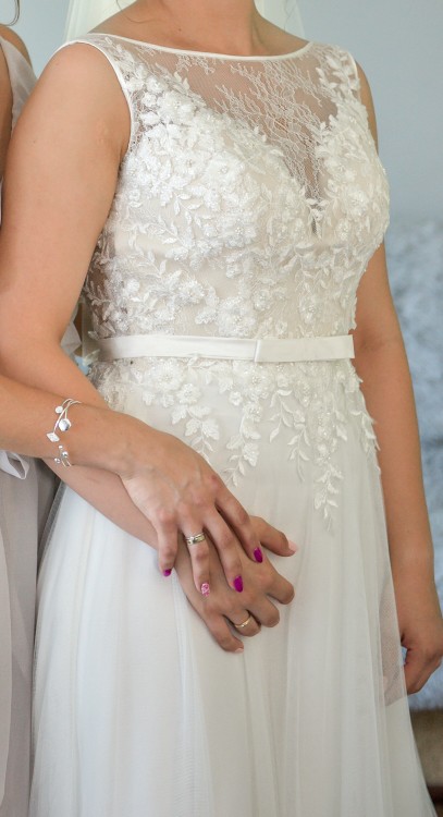 Suknia za sprawą jedwabnego tiulu jest bardzo lekka, zwiewna oraz delikatna.