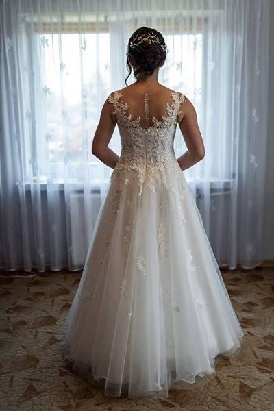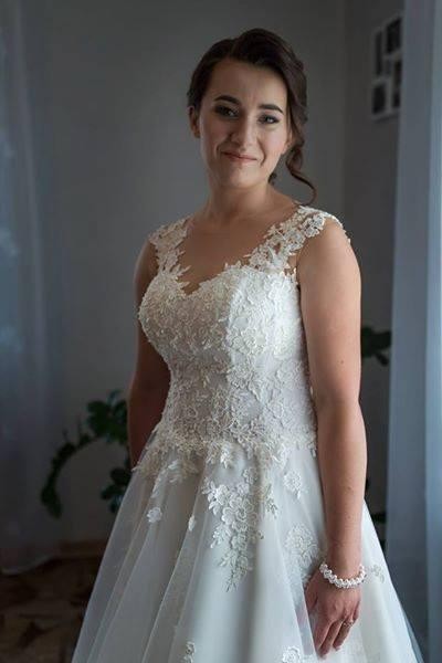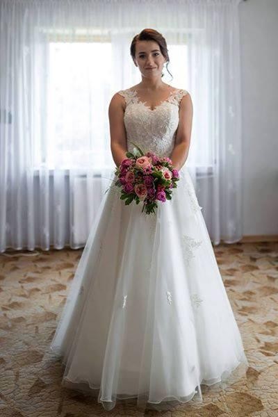 Cudo świetnie sprawdziło się w upalny dzień, jest tak lekka, że czasami zastanawiałam się czy ją w ogóle mam na sobie a w tańcu wirowała! Ma małe koło, które tylko dodaje uroku bo nie czuć go wcale! Do sukni dodaję dwa welony. Naprawdę warto się nad nią zastanowić bo daję gwarancję, że wszystkim się spodoba !