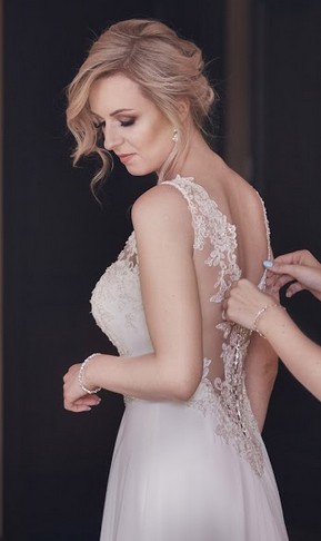 Suknia bardzo komfortowa, podpinany tren od wewnątrz sukni.
