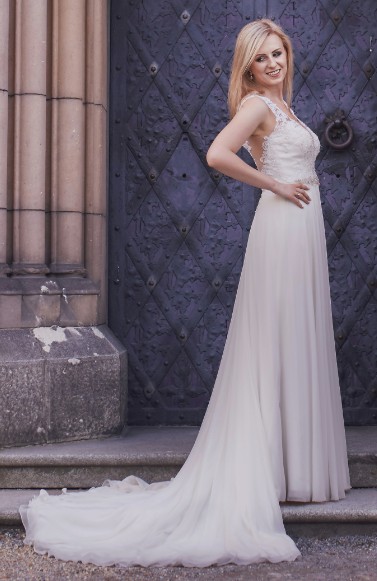 Suknia bardzo komfortowa, idealnie sprawdziła się na ślubie i weselu w lipcu. Suknia z trenem, tren podpisany od wewnątrz sukni, dzięki takiemu rozwiązaniu tren nie jest w ogóle widoczny.