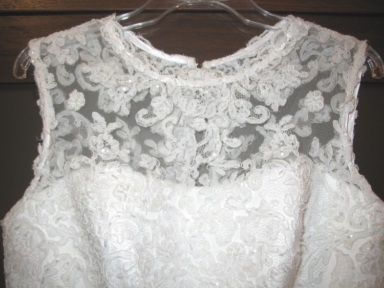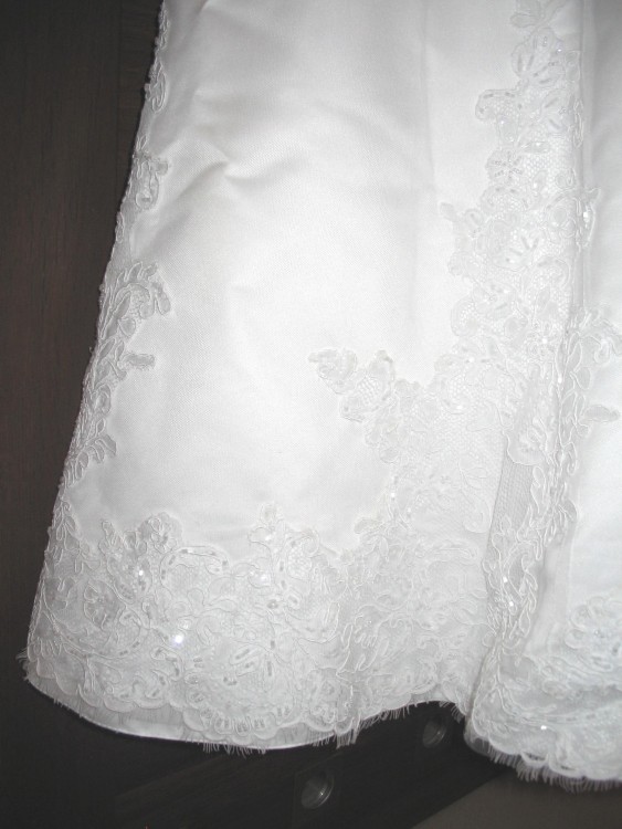 - góra sukni i cały obwód dołu sukni ozdobione są pięknymi koronkowymi aplikacjami,