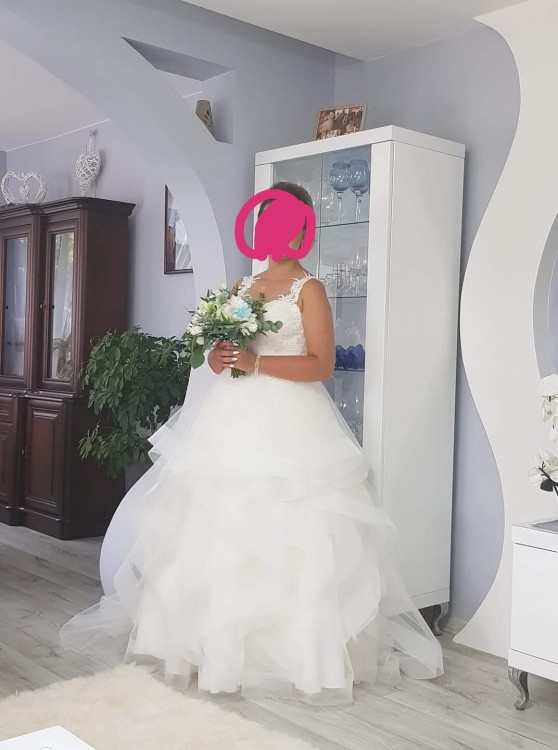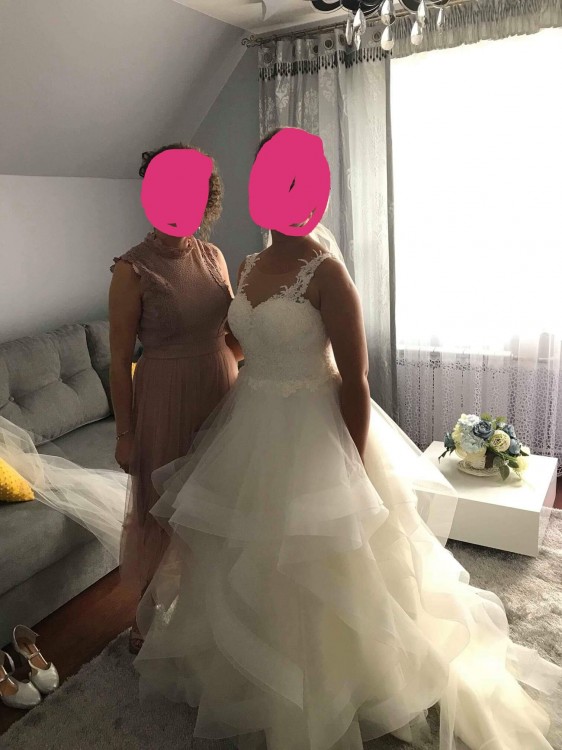 Suknia w stanie idealnym. Dolne warstwy falban zostały wymienione w salonie.