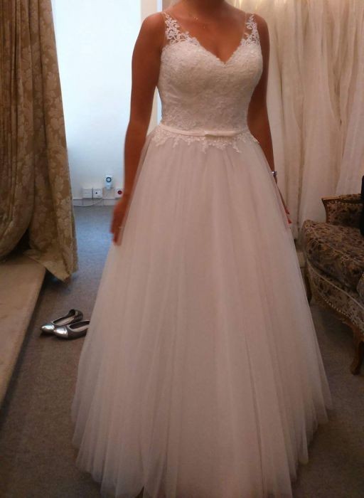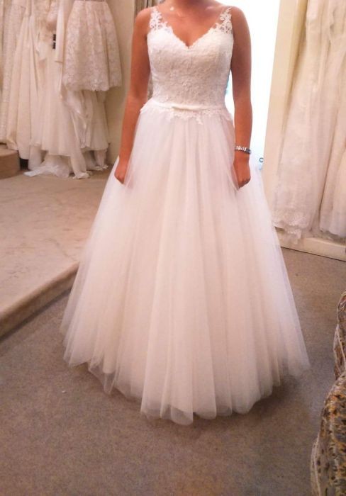 Sprzedam suknię ślubną zakupioną we wrześniu 2017 roku w Salonie Mody Ślubnej Madonna. Model to Sposabella 1522 pochodzi z najnowszej kolekcji Vanilla Sposa 2017. Kolor ivory. Cena w Salonie to 3500 zł. Rozmiar z metki 38 ale suknia dopasowana pod moją sylwetkę.