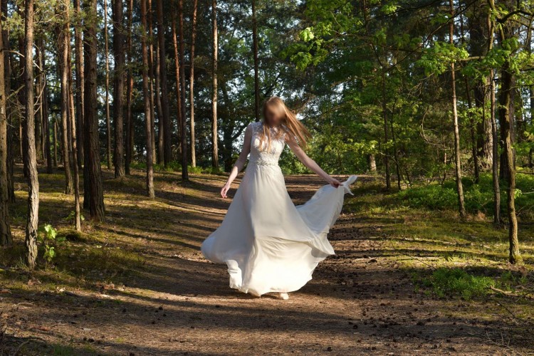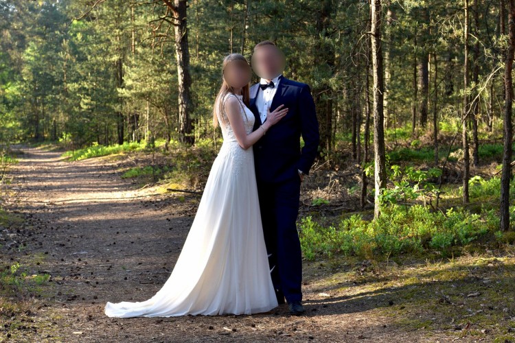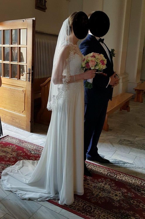 Suknia założona 2 razy, na ślub i sesję zdjęciową. Oddana po sesji do pralni.