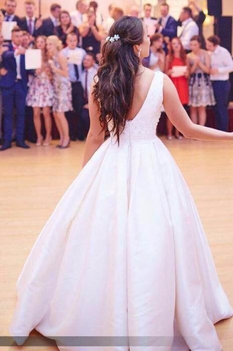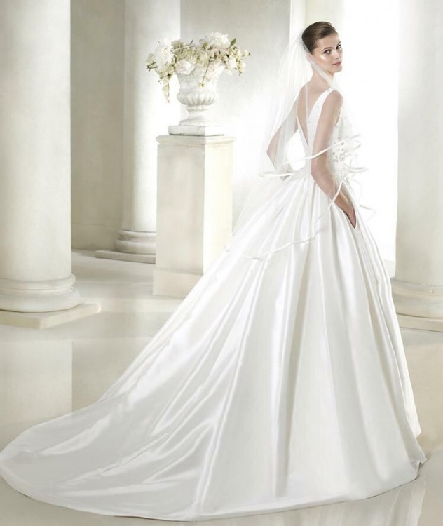 Suknia posiada długi tren, który można sprytnie i szybko podpiąć. Dodatkowym atutem sukni są funkcjonalne kieszenie, ukryte tak, że nie sposób ich dostrzec :) a pannie młodej na pewno się przydadzą :)