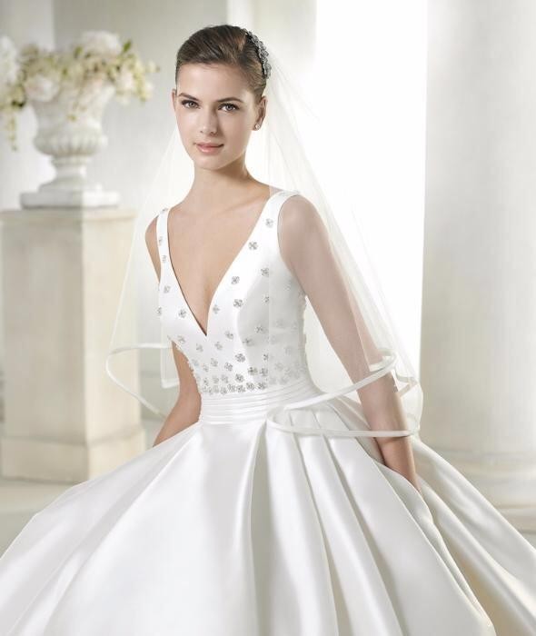 Suknia idealna dla figury "klepsydry" rozmiar 36 (w talii 34), mieżącej 165 cm wzrostu. Suknia ma głęboki dekolt (również na plecach) i idealnie pasuje dla osoby mającej duży biust. Mocno zwężona w talii tworzy wcięcie niczym u osy!