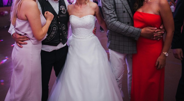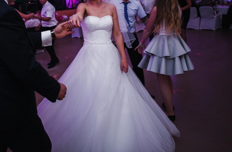 Można założyć suknię z kołem lub bez.
