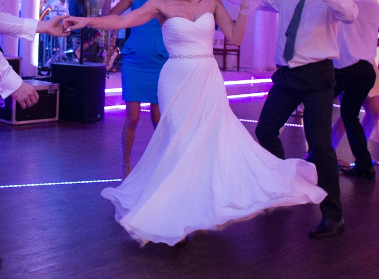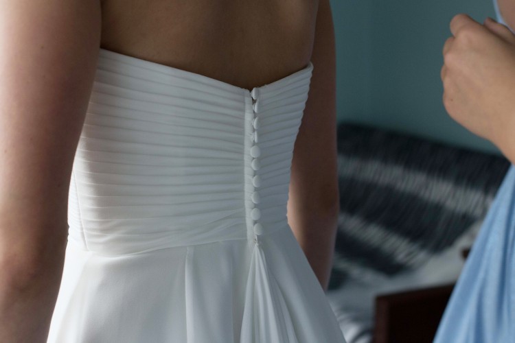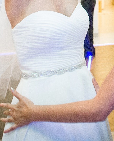 Sukienka jest bardzo lekka i wygodna, nie zsuwa się, ma przy biuście silikonowe zabezpieczenie uniemożliwiające spadanie. Opcjonalnie można założyć cienkie ramiączka (są w komplecie i suknia posiada zakładki od wewnątrz, żeby je założyć). W gorsecie są wszyte push-upy od dołu i po bokach, podkreślają i modelują biust. Przepięknie układa się w tańcu, dobrze wygląda zarówno z, jak i bez koła.